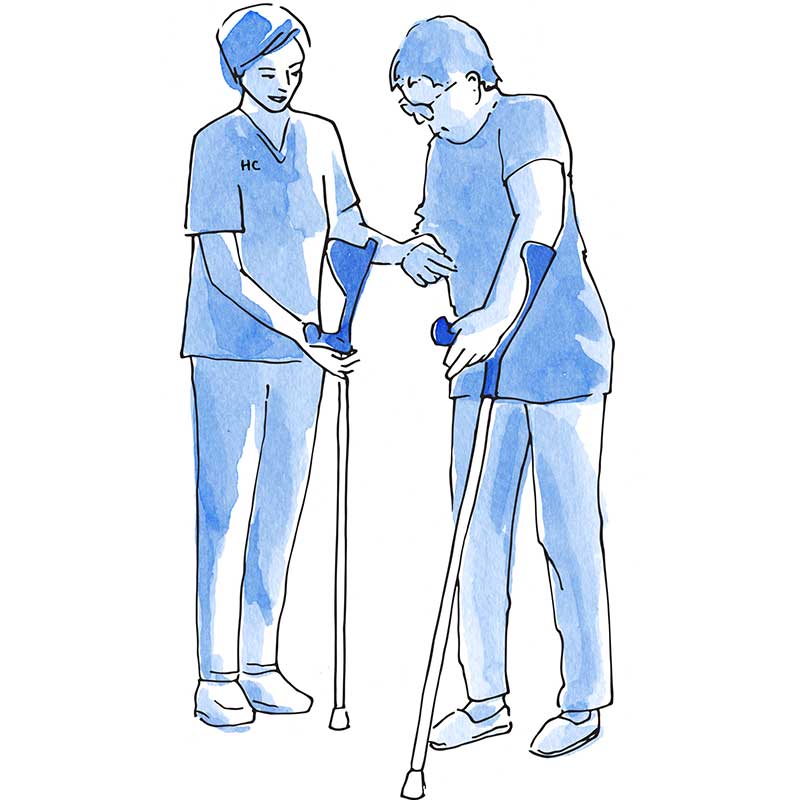 The Physiotherapist will see you on the pre-assessment day. Crutches will be adjusted for patient size and instructions given on how to use these safely. Trainers are far safer than slippers.