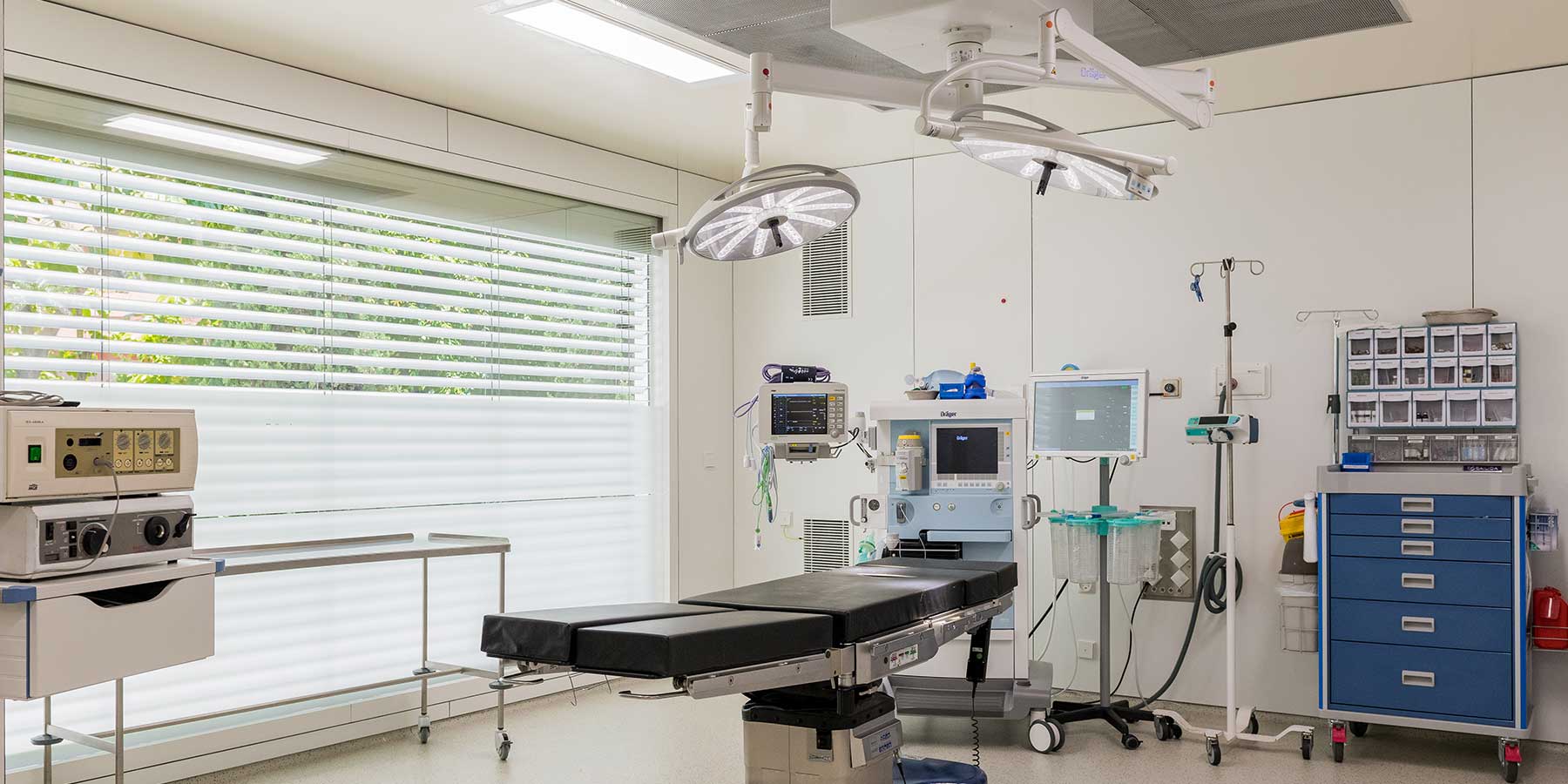Nuestra unidad quirúrgica, recientemente renovada, está dotada de 4 quirófanos equipados con la última tecnología, 3 para cirugía normal GRUPO I y 1 para cirugía especial GRUPO II. Se garantiza la máxima seguridad a través de los sistemas de flujo laminar y la sala de ambiente controlado tipo A, que permite la realización de cirugías complejas minimizando el riesgo de infecciones. Además tenemos 7 puestos URPA de vigilancia postquirúrgica. Completan el área quirúrgica una sala de endoscopias y una sala de trasplante capilar.